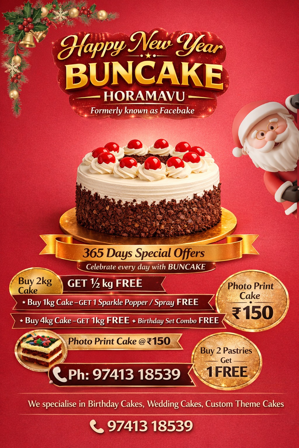 Buncake Horamavu is part of the popular Buncake bakery franchise, known across Bengaluru for quality cakes and delightful desserts. Located on Kalkere Main Road near Jayanthi Nagar, we serve a wide variety of cakes and pastries baked fresh every day.