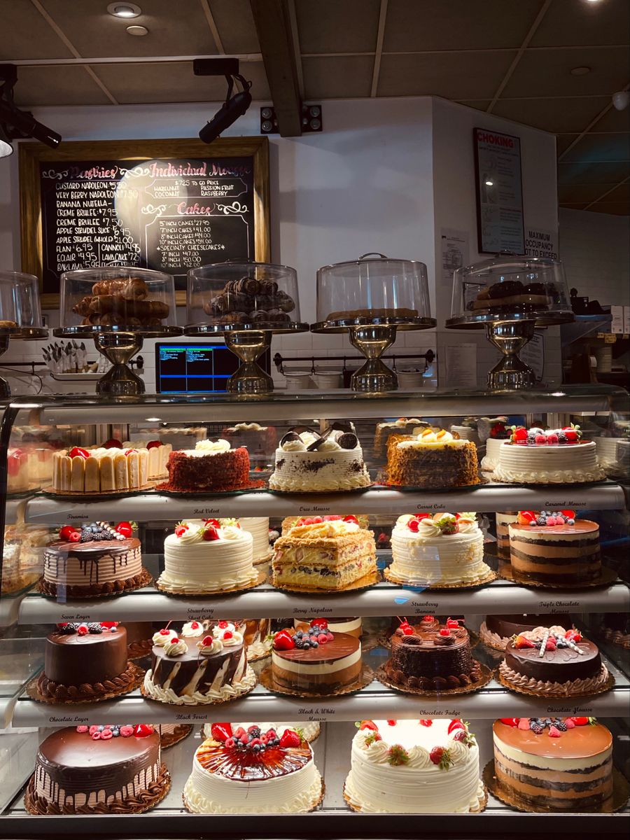 Cakes, pastries, dessert slices, and signature bakery items